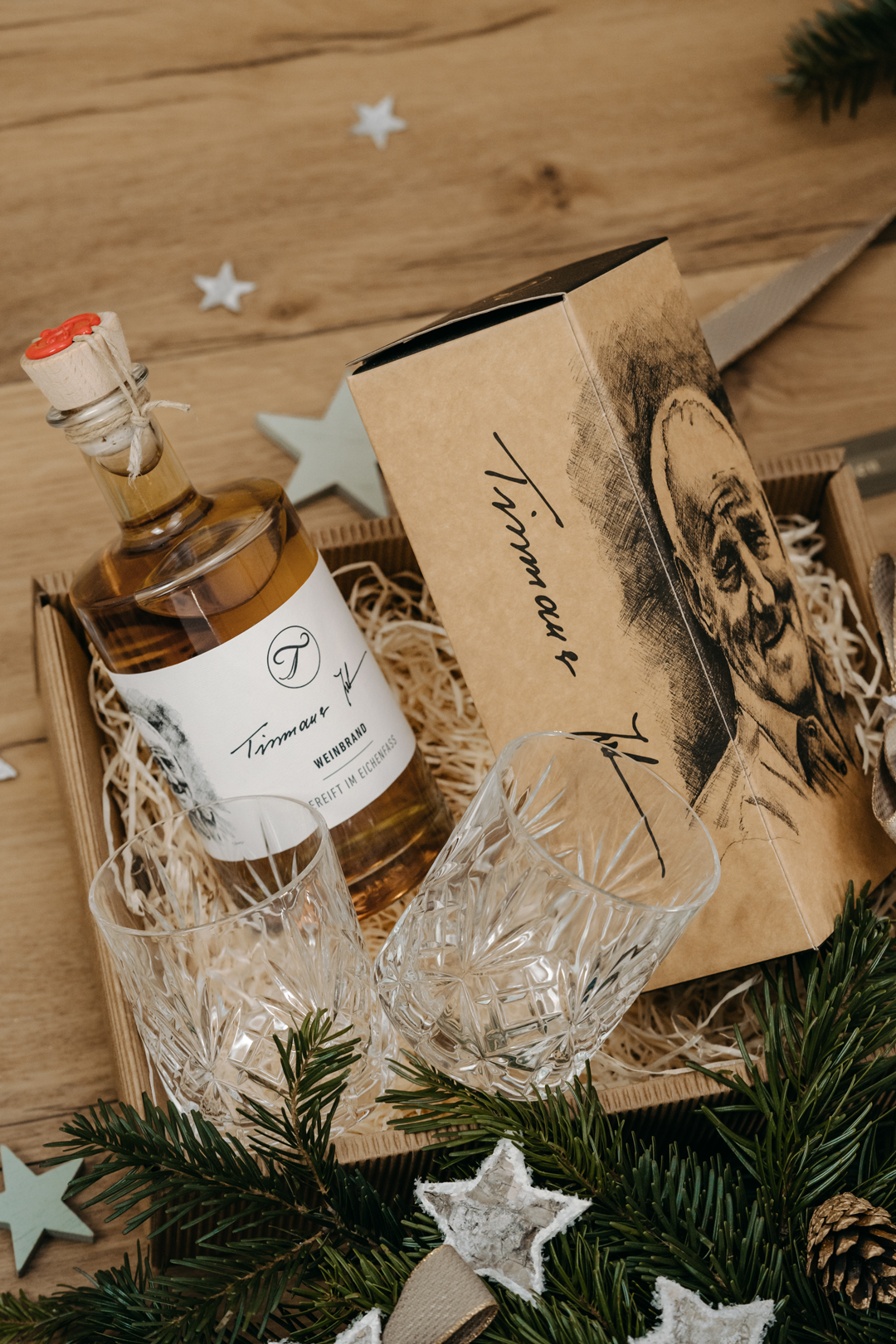 Ein Weinbrand von höchster Qualität. 8 Jahre im Eichenfass gereift. Ideal für die kalte Jahreszeit. Verpackt im Naturkarton mit zwei sehr eleganten Gläsern für den perfekten Genuss.
