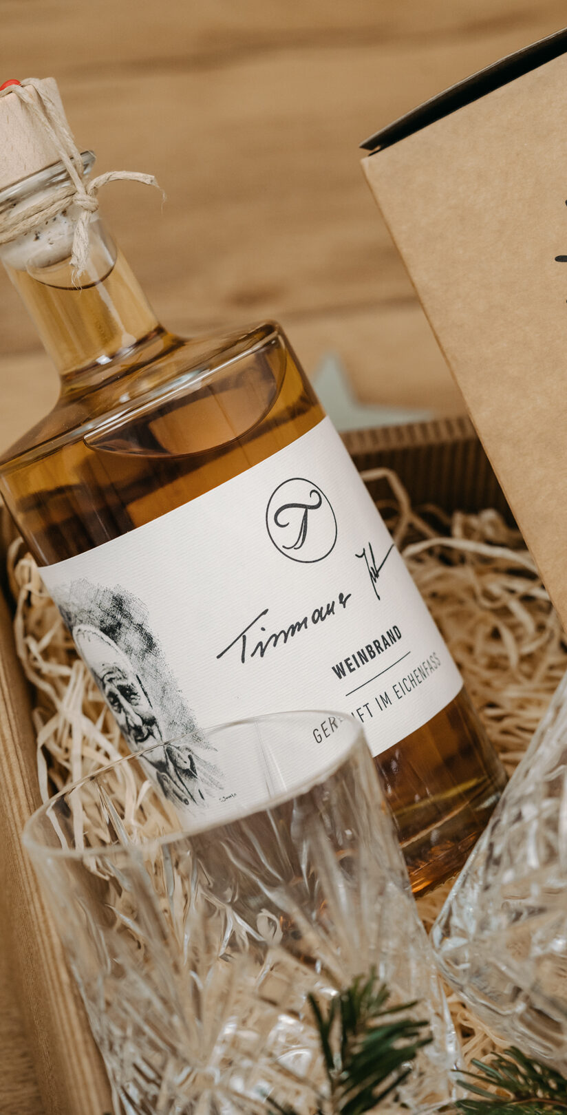 Ein Weinbrand von höchster Qualität. 8 Jahre im Eichenfass gereift. Ideal für die kalte Jahreszeit. Verpackt im Naturkarton mit zwei sehr eleganten Gläsern für den perfekten Genuss.